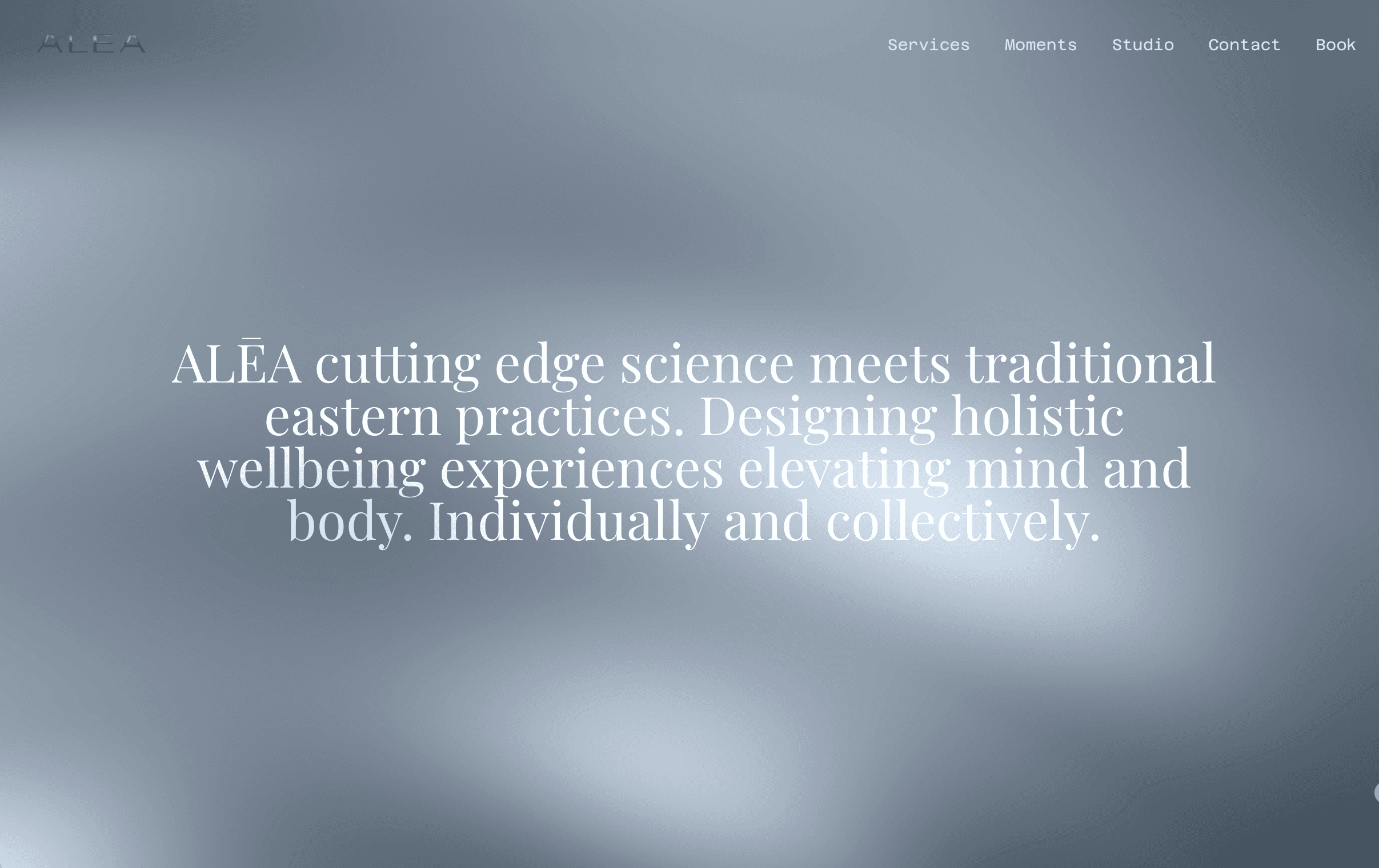 A responsive website designed and developed for ALĒA Studios, a Berlin-based wellbeing and movement experience brand. The project translates the studio’s holistic philosophy into a calm and immersive digital environment. The design emphasizes clarity, generous spacing, and refined typography to reflect the balance between Eastern practices and contemporary wellbeing culture. Smooth transitions and a minimal visual language guide users through services, brand experiences, and retreat offerings while preserving a sense of stillness and intentionality.