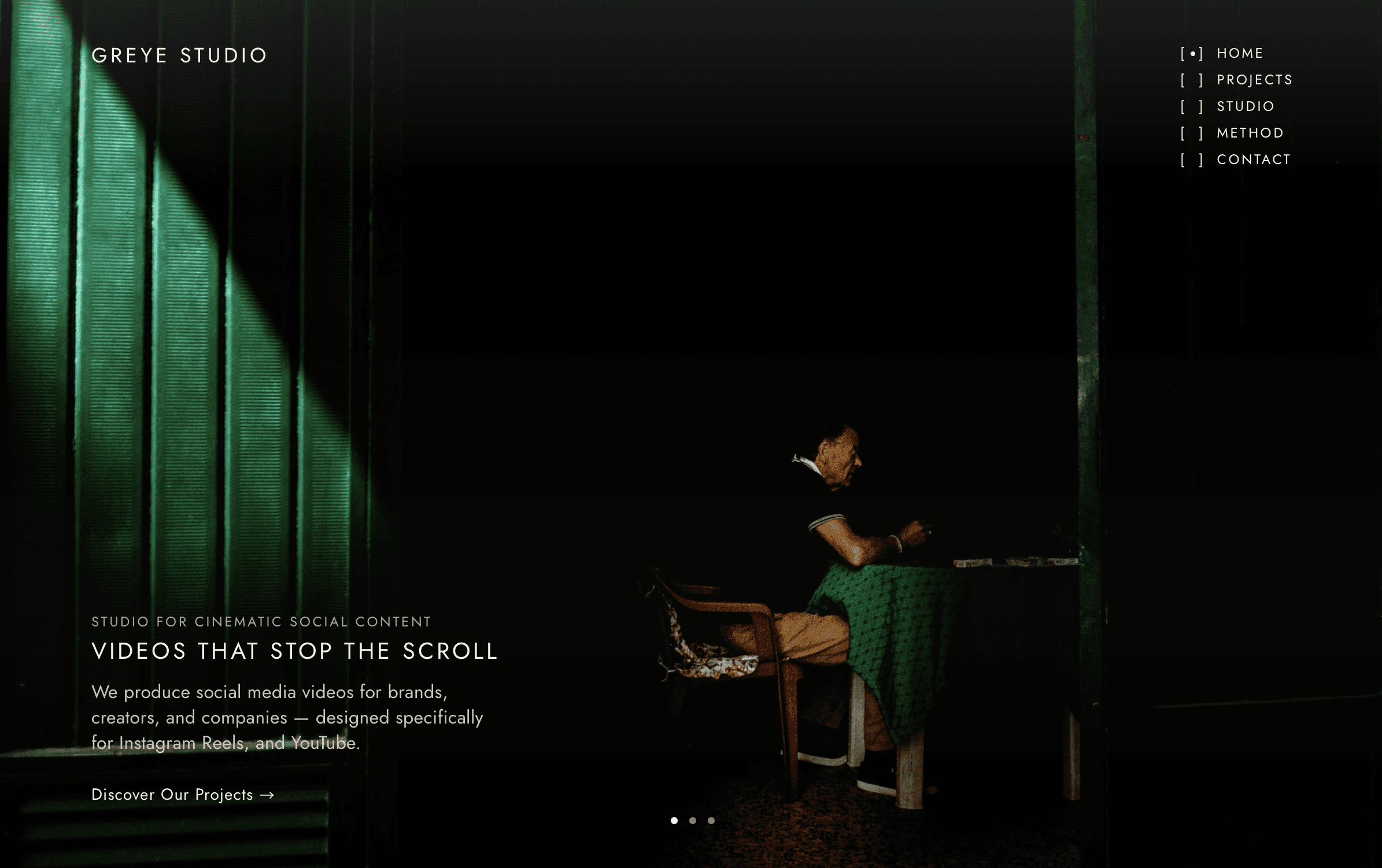A responsive website designed and developed for Greye Studio, a practice focused on shaping brand direction through visual systems and digital outputs. The project translates a process-driven approach into a website that feels structured, precise, and intentional. Rather than relying on expressive visuals, the design is built around control—tight grids, consistent spacing, and a clear typographic system. Content is organized to reflect how the studio thinks: reducing complexity, aligning elements, and presenting work as part of a coherent system rather than isolated cases.